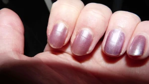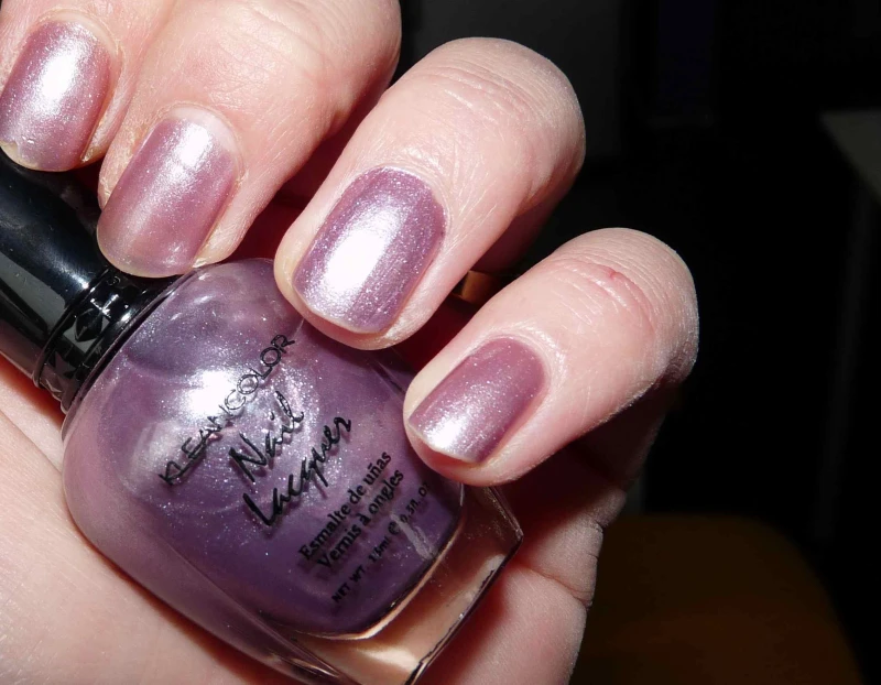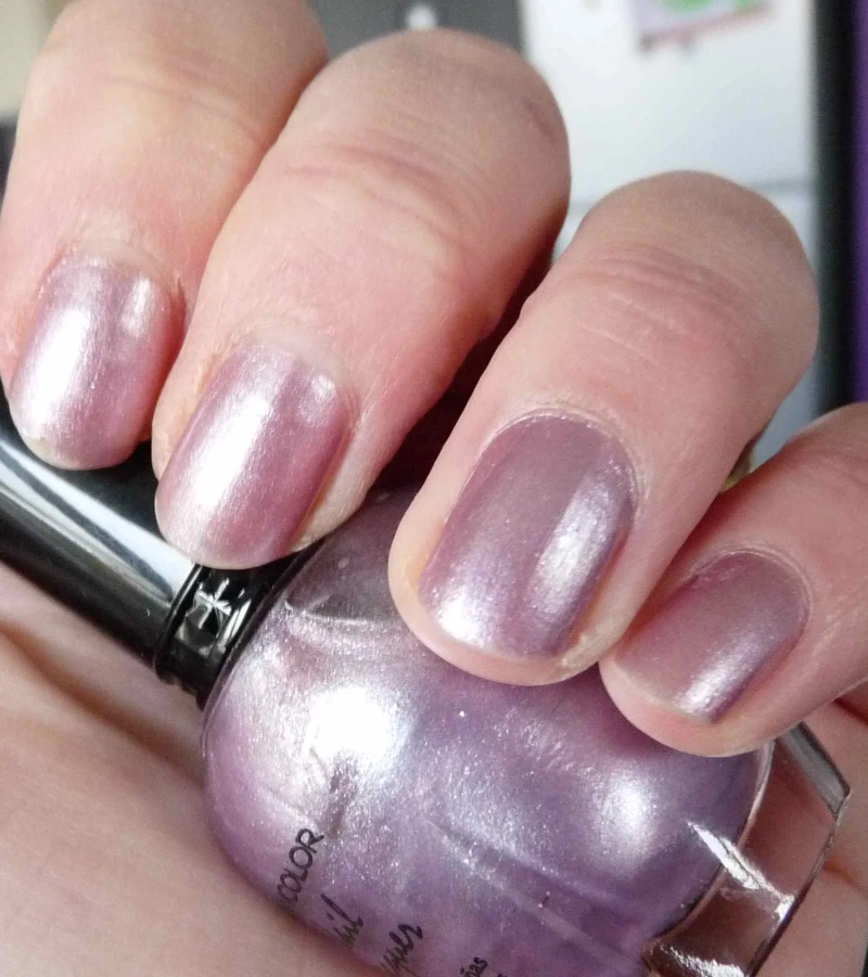 Si vous avez envie d’ une couleur qui ne soit pas qu’un banal mauve sans âme , je vous conseille ce vernis bourré de nacres au rendu un peu métallique , assez original mais pas vulgaire pour un sou . J’en suis devenue fan !