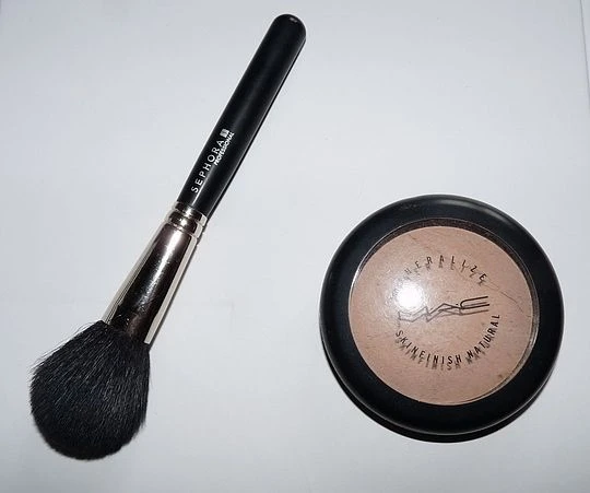 J’applique donc une couche de mon Fdt fluide Mac et j’utilise la poudre Mineralize SkinFinish Natural ( MSN ) en prévention de la brillance.
