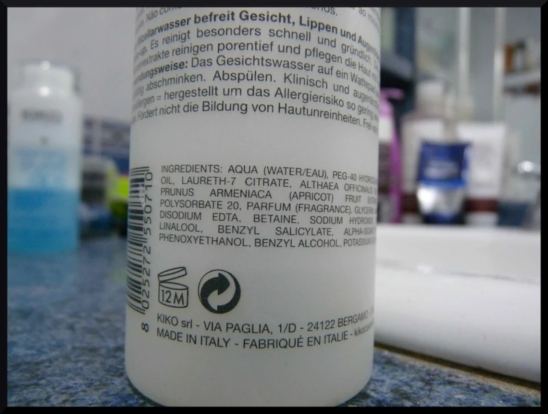 Je note que Kiko vante les vertus nettoyantes et hydratantes de cette eau micellaire sur la page produit, n’hésitant donc pas à confondre démaquillage et nettoyage, ce qui m’agace au plus haut point. NETTOYER ET DEMAQUILLER SONT DEUX CHOSES DIFFERENTES et je le constate à chaque utilisation d’un démaquillant.