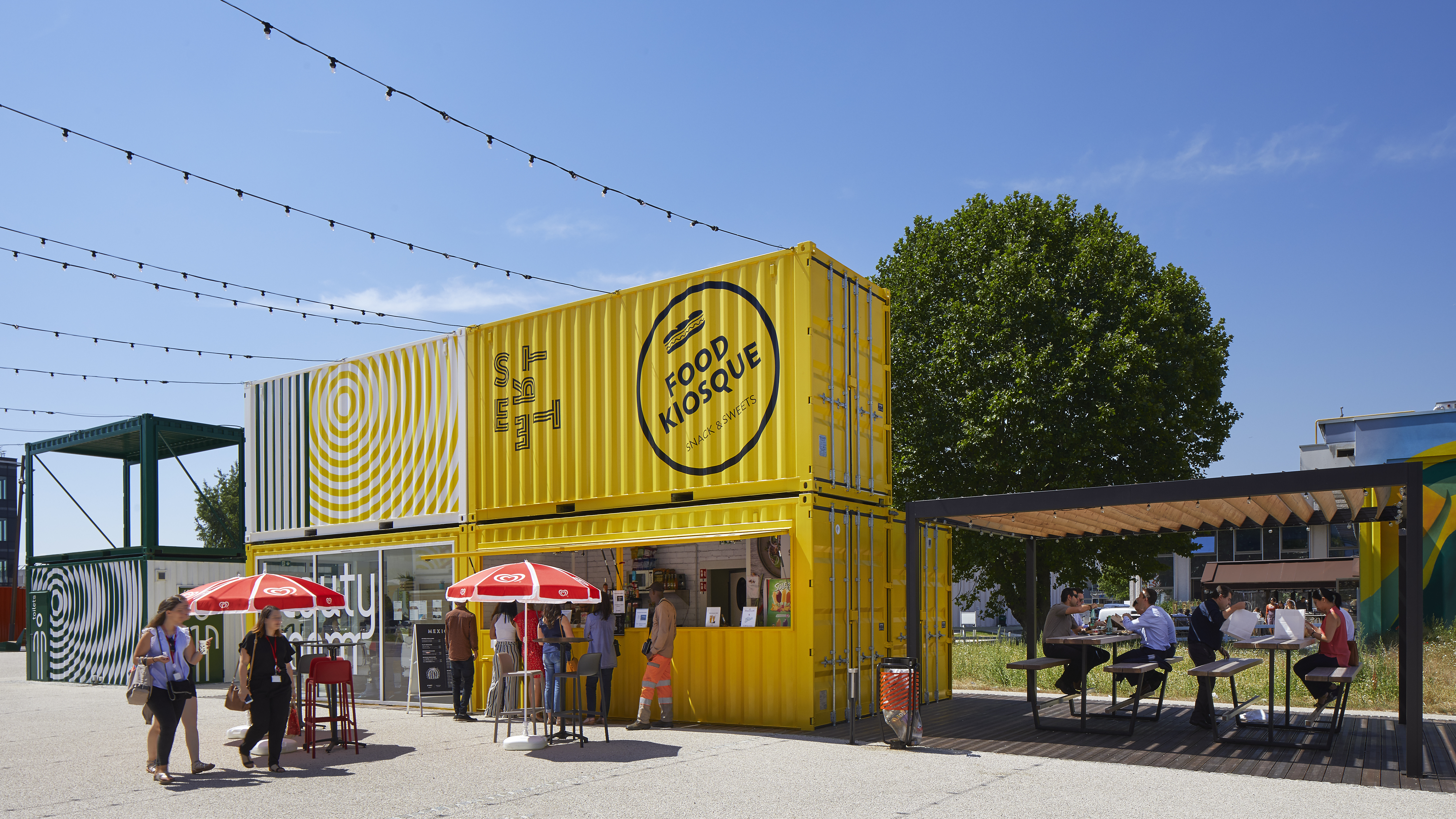 Il y’a des transats de partout, des parasols, une buvette, un espace où retrouver les coachs sportifs qui travaillent sur le parc, de grandes tables ombragées, et des containers recyclés, véritables bureaux « mobiles » qui font toute l’originalité du lieu. Jeudi 12 juillet dernier, j’ai donc découvert une bijouterie, un pop-up store de déco, mais aussi un Food Kiosque :