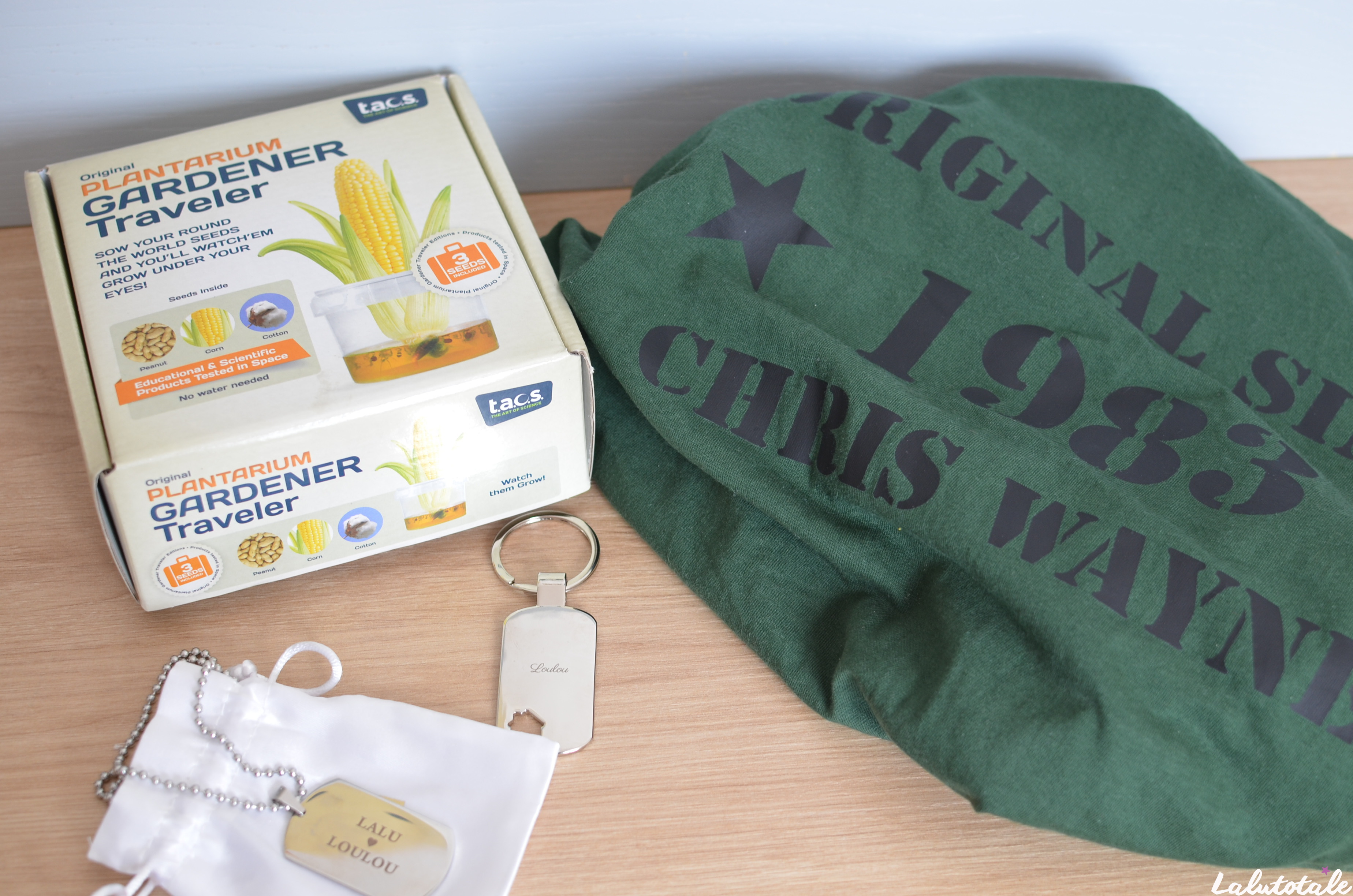 - la qualité des cadeaux. Sincèrement j’étais prête à sortir les griffes sur ce point-là mais finalement je n’ai rien à redire ! Sauf peut-être pour la gravure que je trouve peu profonde ( faut toujours à aller profond )( PARDON. )mais pour le reste c’est un sans-faute : les textiles, les impressions et les matériaux utilisés sont de qualité. Et que dire de toutes les personnalisations possibles ?