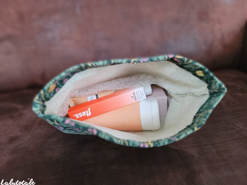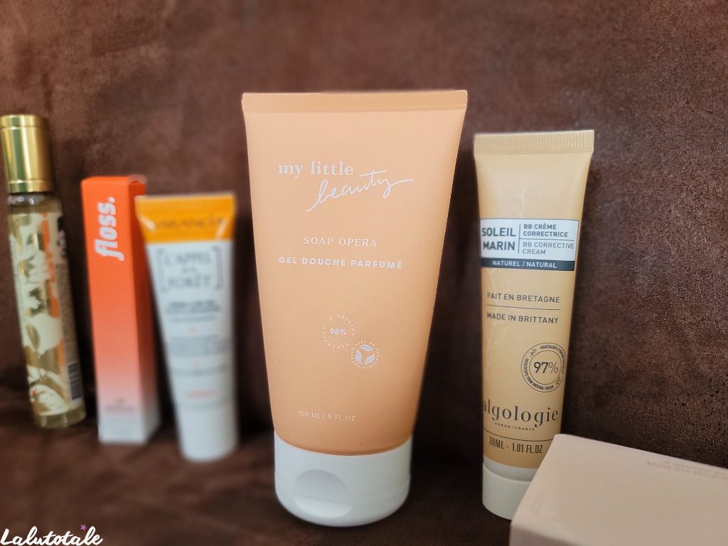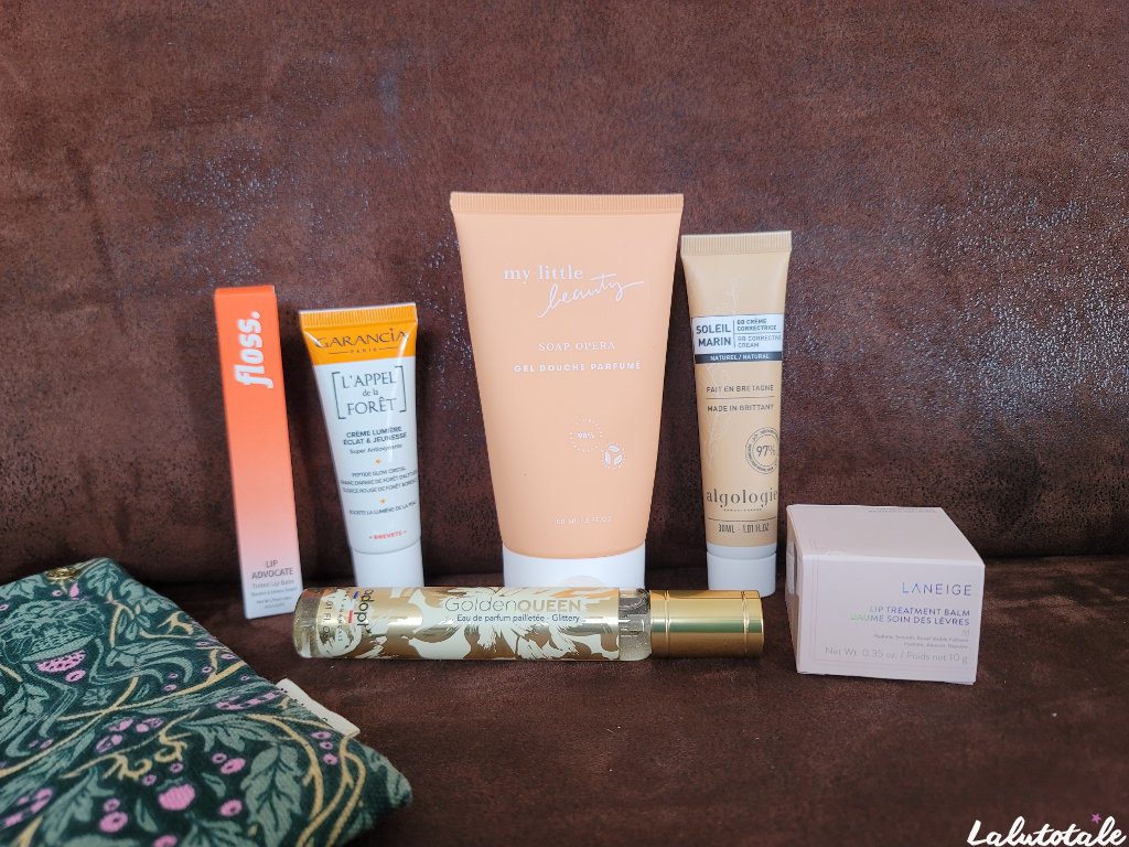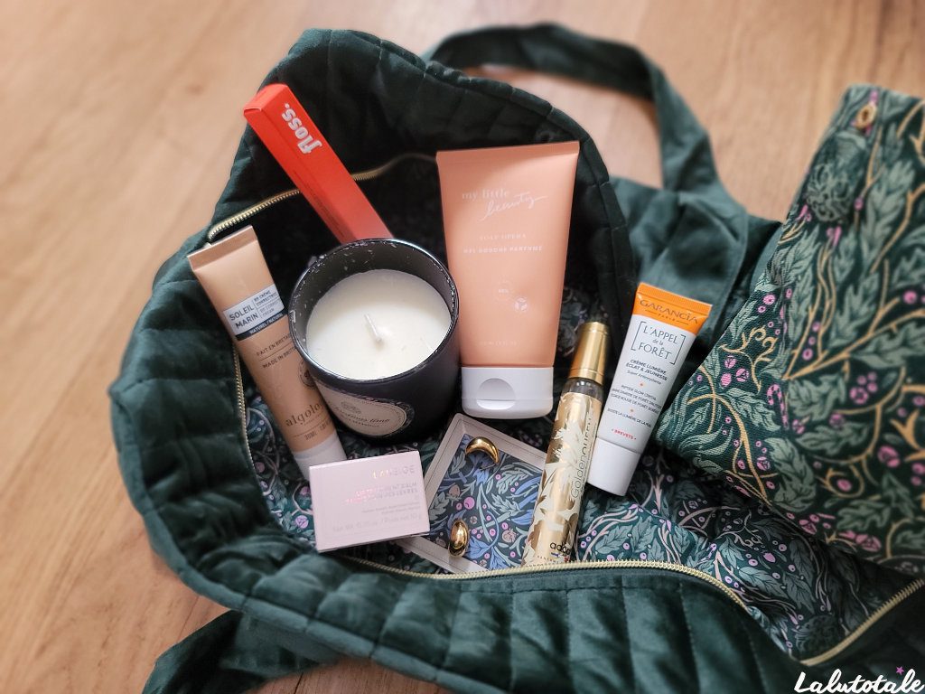 Les cosmétiques sont cachés dans la jolie pochette. Et vous allez voir qu’encore une fois, MYLITTLEBOX a bien mis le paquet du côté des cosmétiques.
