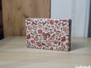 Côté packaging, cette box BLISSIM adopte le format traditionnel : un pavé droit. Au premier abord, on peut deviner qu’il s’agit d’une box automnale. Mon éclairage pourri est fidèle à la réalité (pas merci la nuit qui tombe à 17h hein.). D’ailleurs j’aime beaucoup le graphisme de cette boîte. Je trouve le motif et les couleurs doux et raffinés.