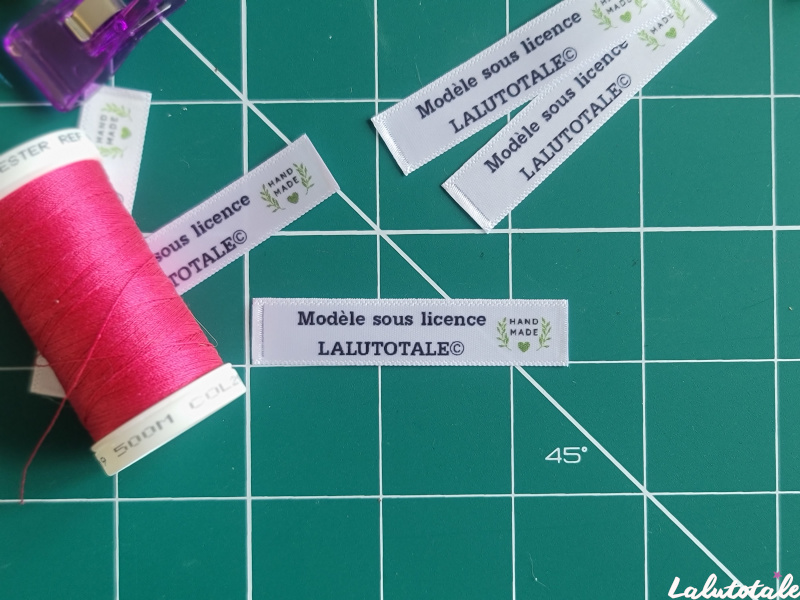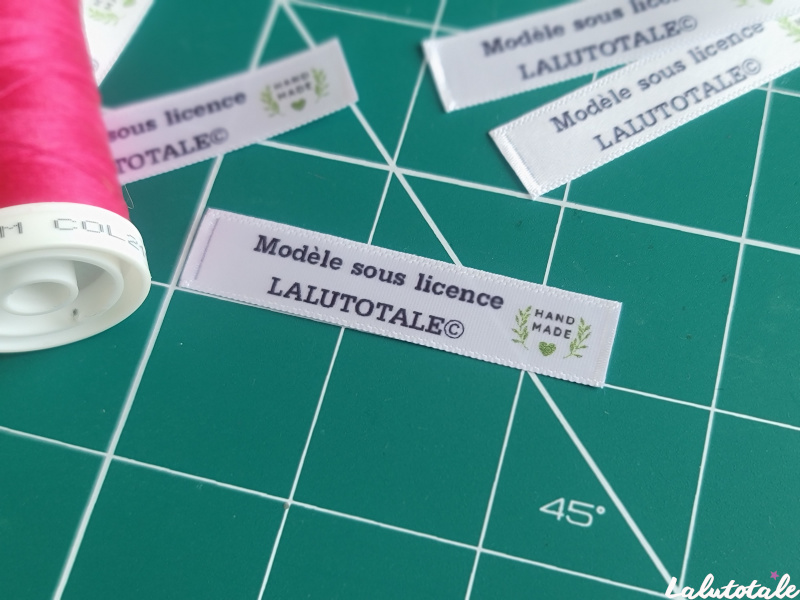 Elle se présente sous la forme d’une étiquette « Modèle sous licence LaLutotale »vous permettant de vendre vos créations : elle est à coudre sur chaque article que vous destinez à la vente.