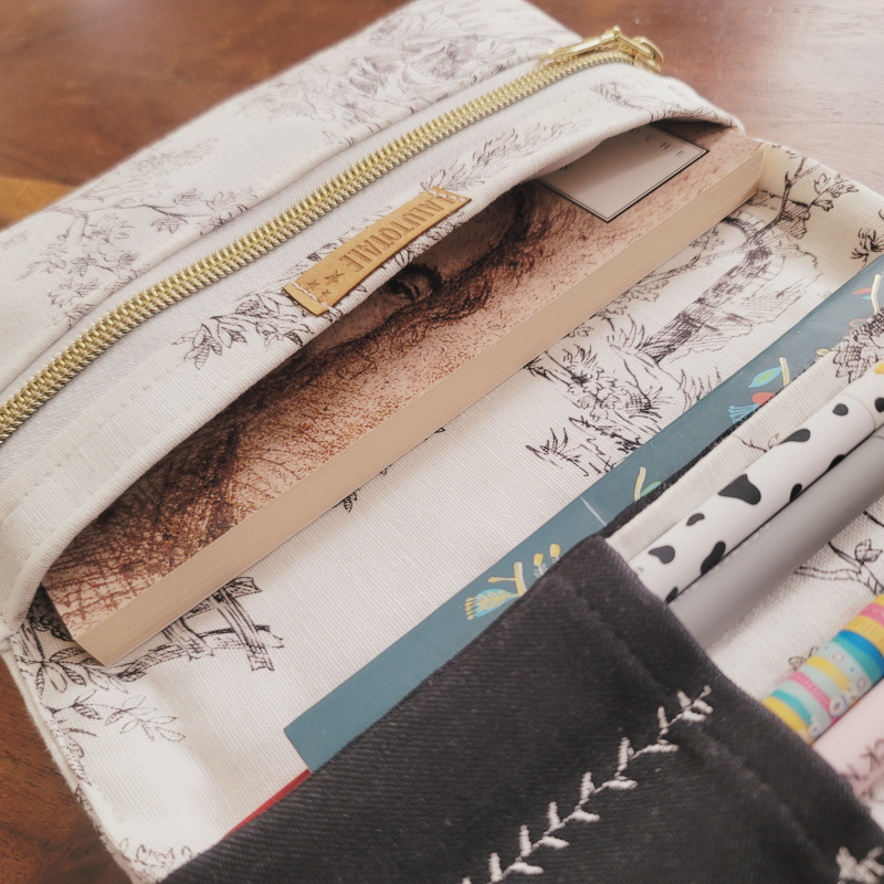 Après Nouzip, Nouzipoche est vraiment parfait le format idéal pour protéger son livre dans son sac, sans encombrement superflu mais avec pleins de rangements en plus! 🙂 Un patron très facile à suivre grâce aux nombreuses explications et photos! 🙂